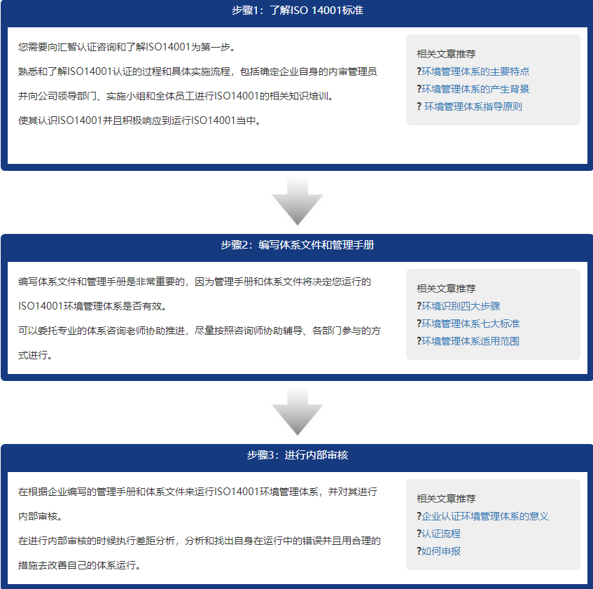 我们通过6个简单的步骤向您展示了如何实施ISO14001环境管理体系并通过ISO14001认证: