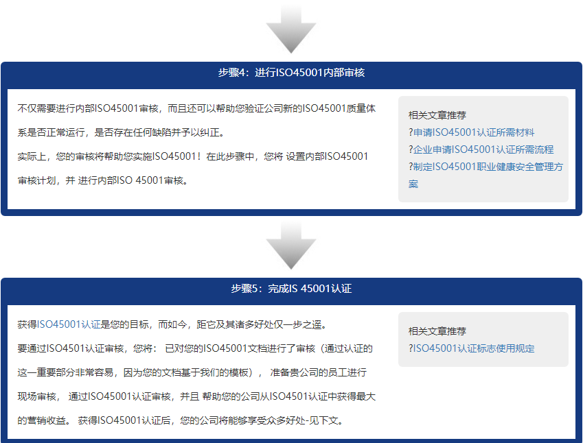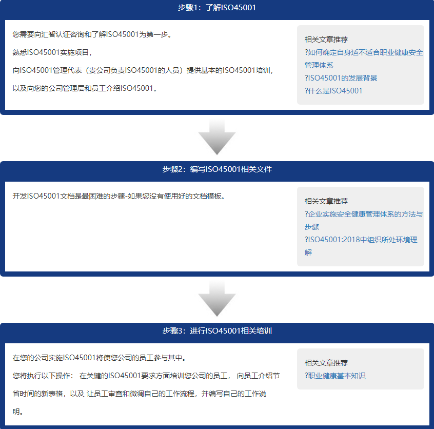 企业运行职业安全健康管理体系到完成认证的五个步骤: