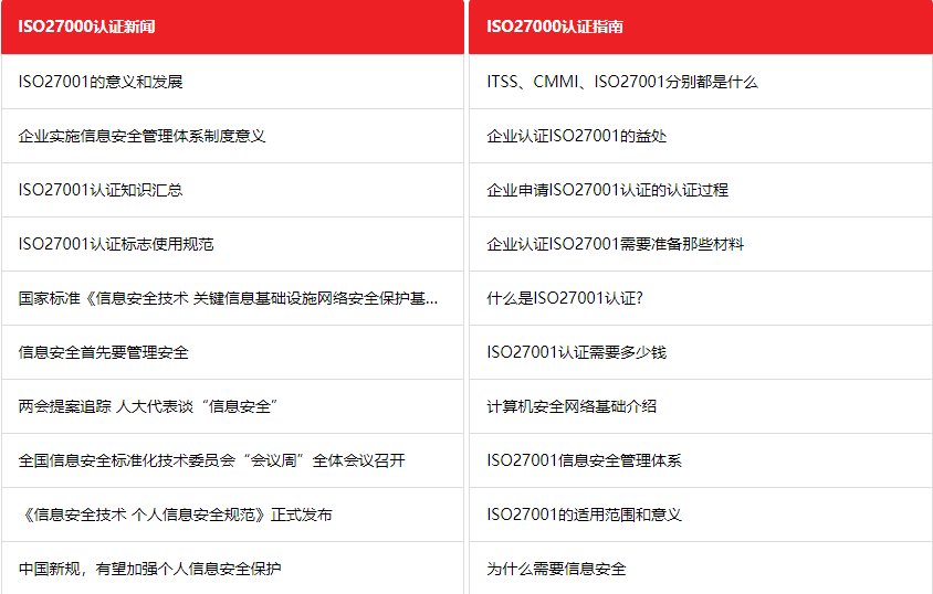 ISO27000信息安全管理体系认证和ISO20000信息技术服务管理体系认证的区别 ISO20000是面向机构的IT服务管理标准,目的是提供建立、实施、运作、监控、评审、维护和改进IT服务管理体系(的模型。建立 IT服务管理体系已成为各种组织,特别是金融机构、电信、高科技产业等管理运营风险不可缺少的重要机制。ISO20000让IT管理者有一个参考框架用来管理IT服务,完善的IT管理水平也能通过认证的方式表现出来。 可翻译为“信息技术- 安全技术-信息安全管理体系 要求”。它规定信息安全管理体系要求与信息安全控制要求,是 一个组织的全面或部分信息安全管理体系评估的基础。前者针对整体的信息服务管理,后者针对信息安全管理。