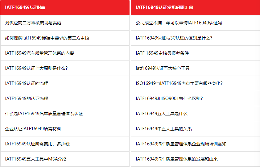 如上所述,IATF16949:2016是基于ISO9001质量管理体系认证的汽车行业全球技术规范和质量管理标准。它是与青岛ISO9001质量管理体系认证结合使用,并且包含针对汽车行业的补充要求,而不是作为独立的管理体系。